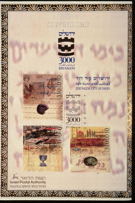 This souvenir leaf, celebrates 3000 years in Jerusalem. Some souvenir leaves are quite scarce.