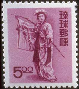 This issue released May 1, 1956 shows the classical dress of Ryukyu dancers.