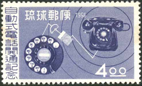 The adoption of dial telephones in the Ryukyus was commemorated June 8, 1956 with this stamp.