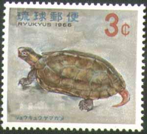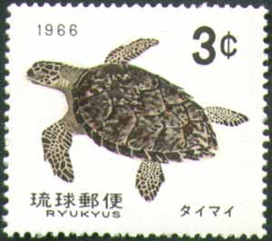 Issued on October 20, 1965, January 20 and April 20, 1966, these three turtles are found on Okinawa, Ishigakijima and Iromotejima islands.