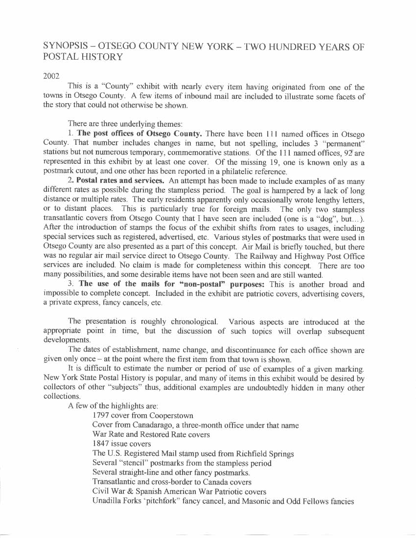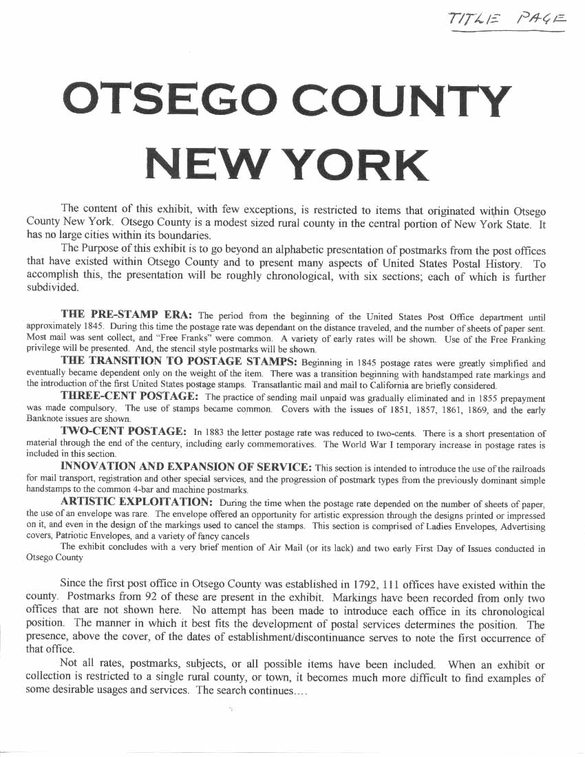 A presentation of many aspects of US postal history, using mail from a single county and including nearly all the post offices of that county. |