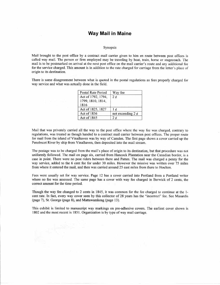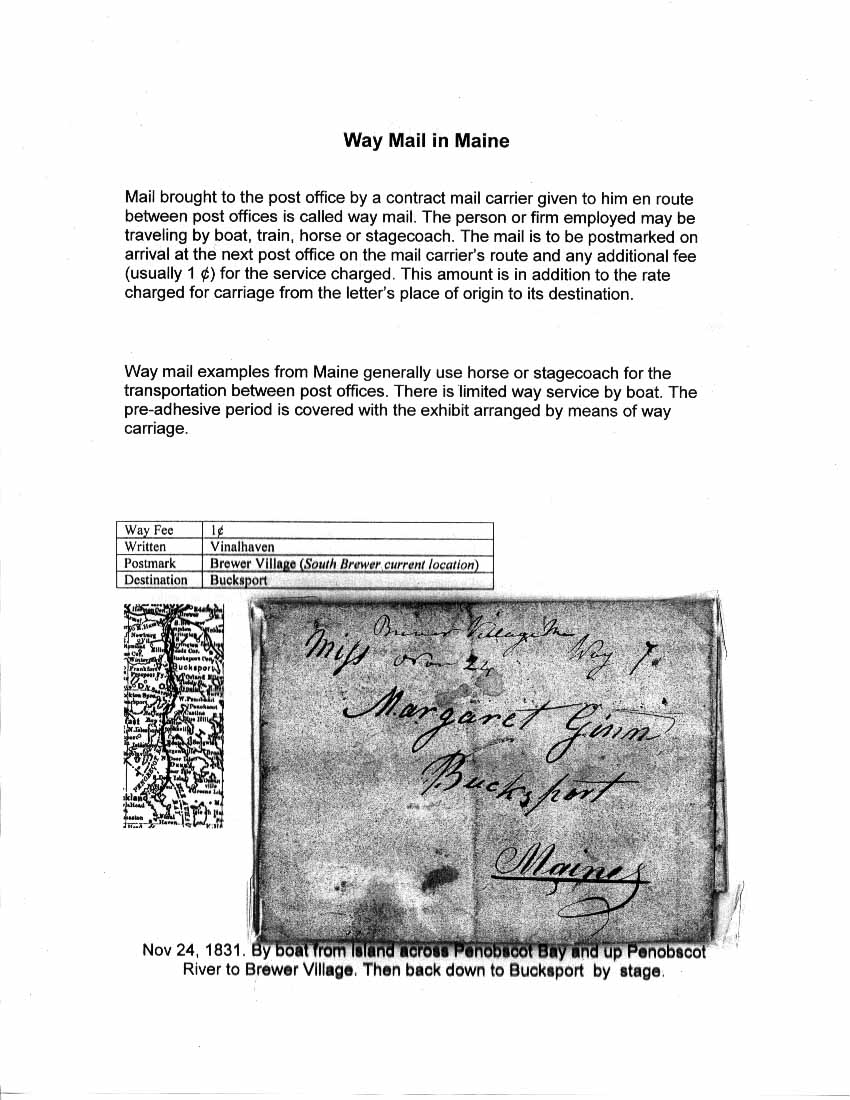 Mail picked up on the way from one office to another by a contract mail carrier in Maine, traveling by horse, stage or boat. |