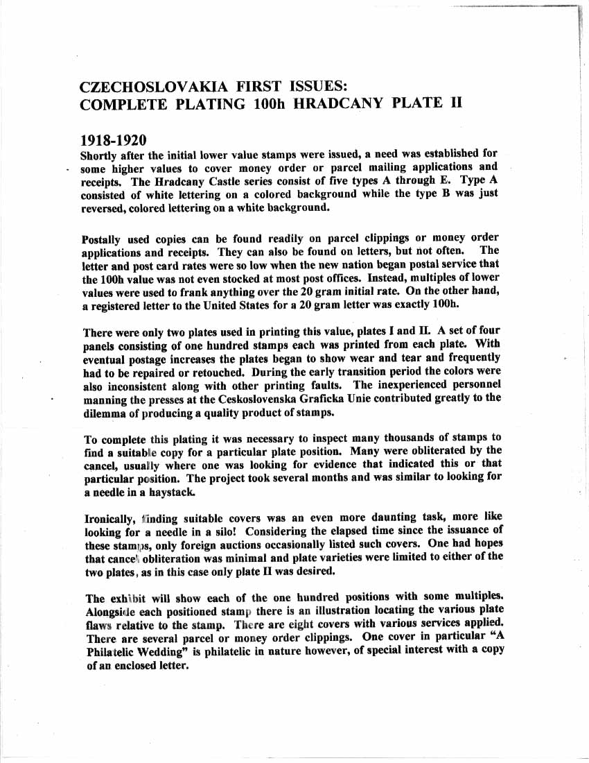 Czechoslovakia 1st Issues: Complete Plating 100h Hradcany, Plate II![]() ![]() |