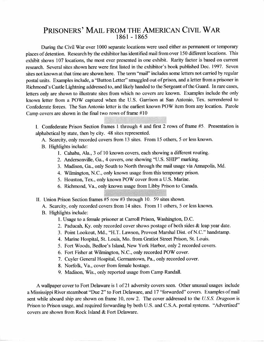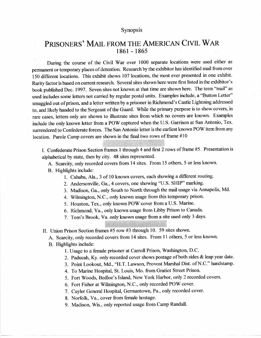 An in-depth study of both Southern and Northern Civil War prison mail. Over 108 different prisons and routings are shown, including many "only known" examples. |