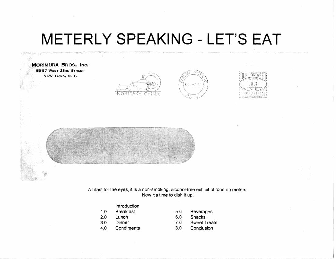 A feast for the eyes, this is a non-smoking, alcohol-free exhibit of food on meters. |