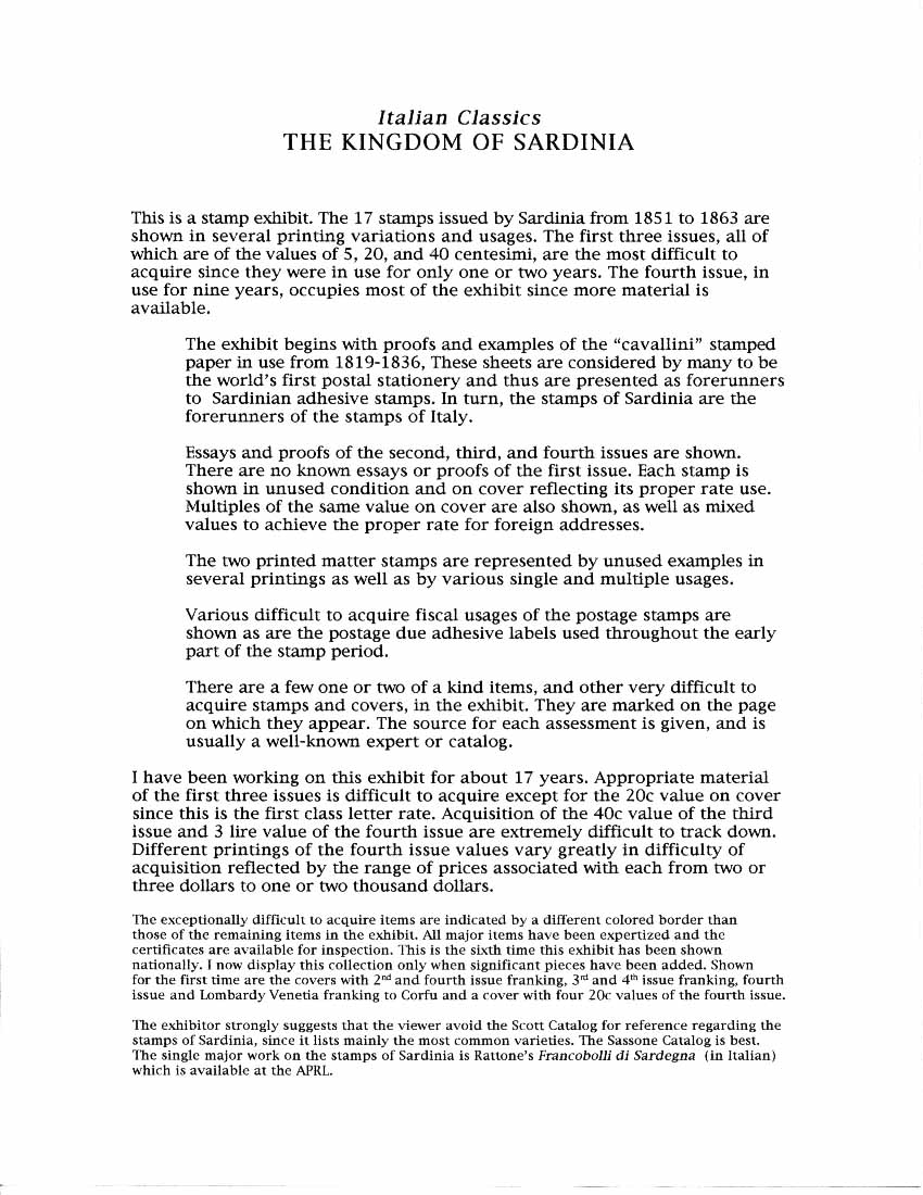 The Cavalini and the essays, proofs, and printings of the four issues of the Kingdom of Sardinia are shown. |