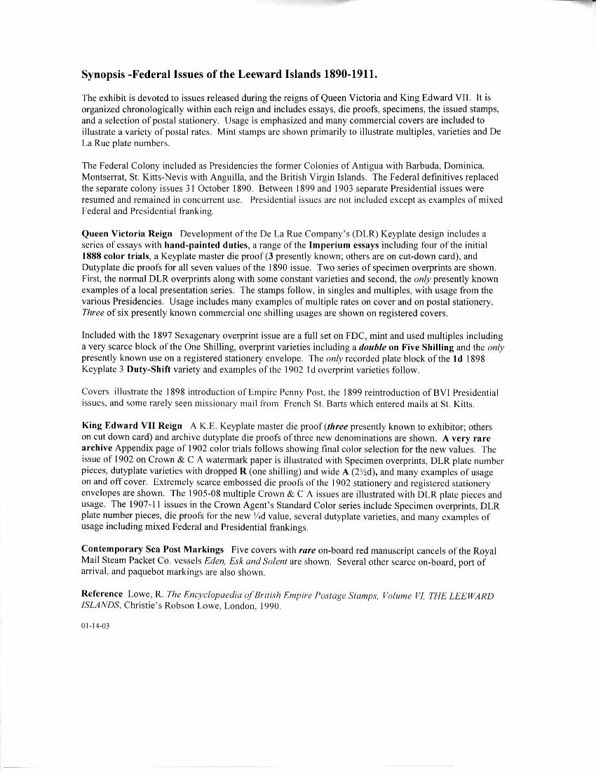 Federal Issues of the Leeward Islands 1890-1911![]() ![]() |