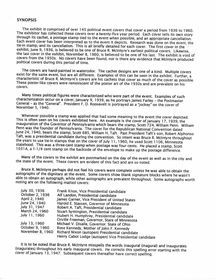 The Politically Inspired Cachets of Bruce R. McIntyre, 1936-60![]() ![]() |