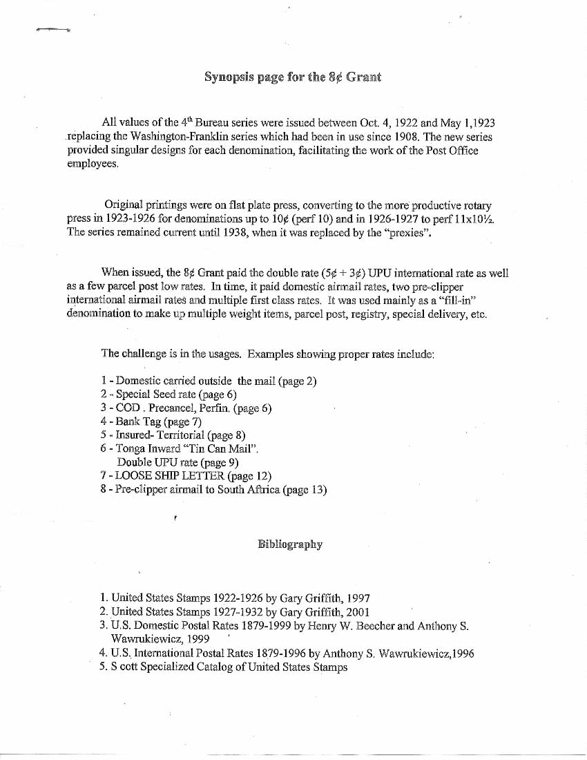 Usages of the 8 Cent Grant - U.S. 4th Bureau Issue![]() ![]() |