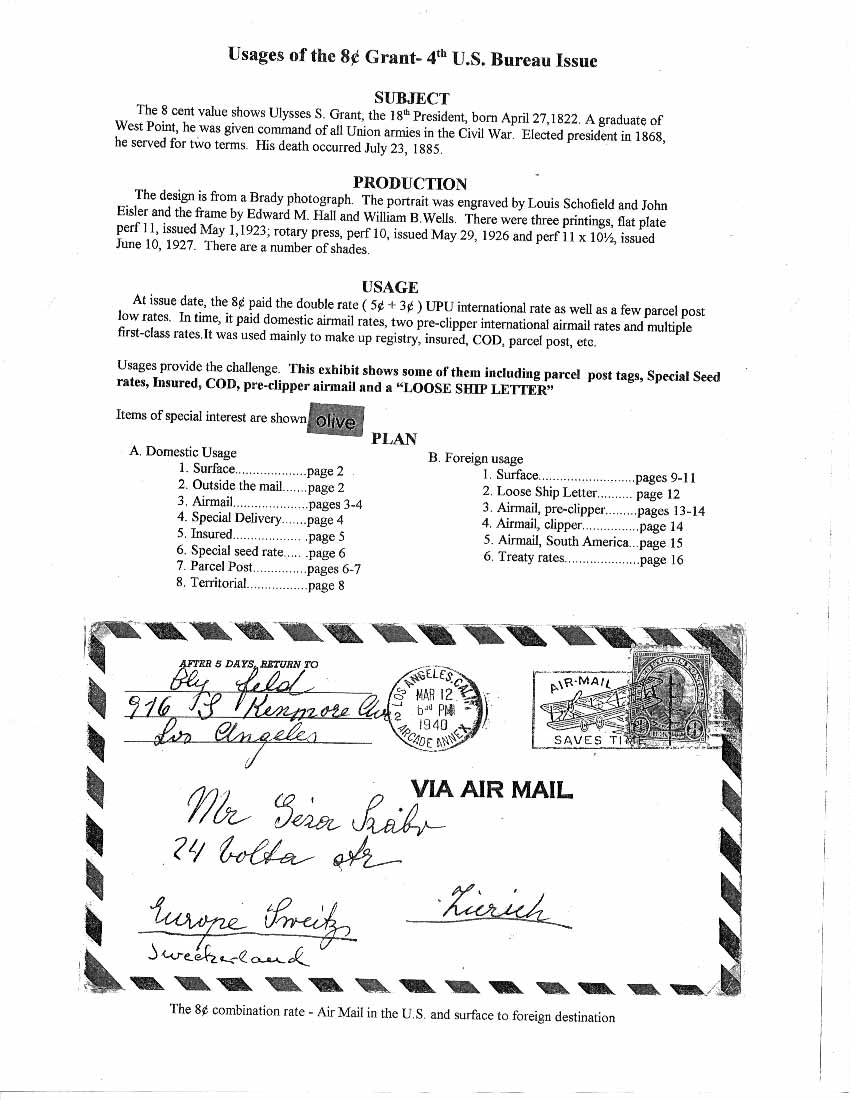 A one frame exhibit highlighting the postal history of this 8 cent definitive stamp first issued on May 1, 1923. |