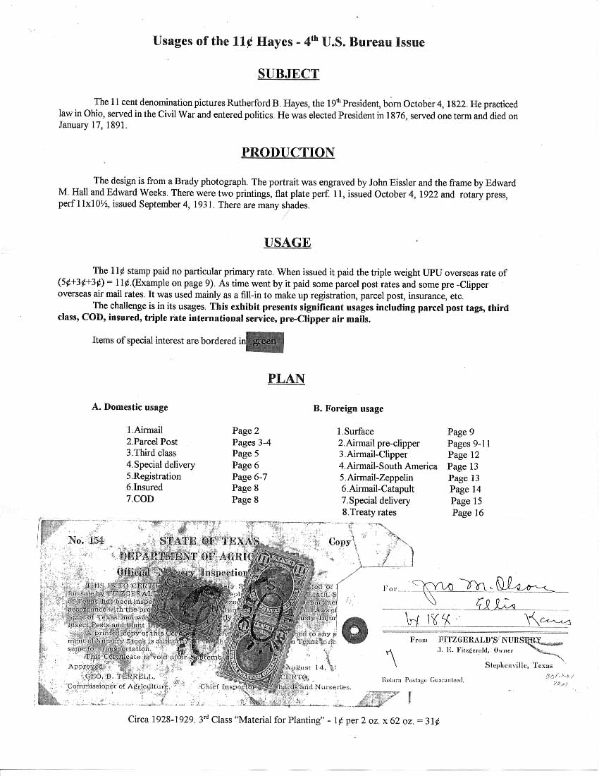 Usages of the 11 Cent Hayes - U.S. 4th Bureau Issue![]() ![]() |