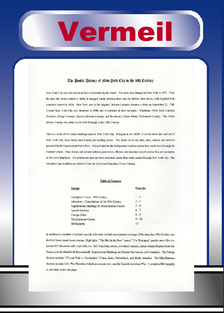 10 frames, PostalU.S. Classic Issues 1845 - 1888: A Selection of Vermont Usages