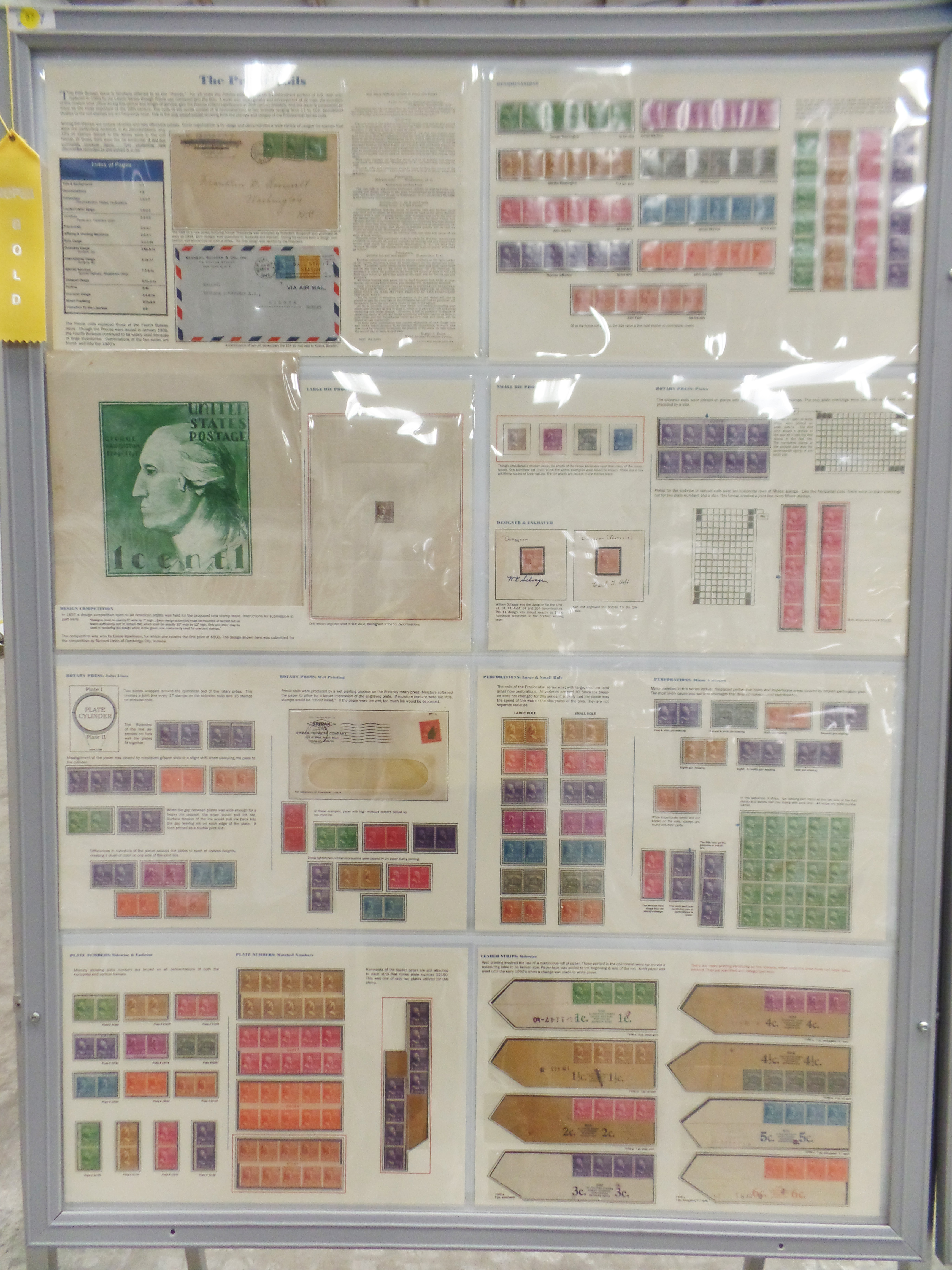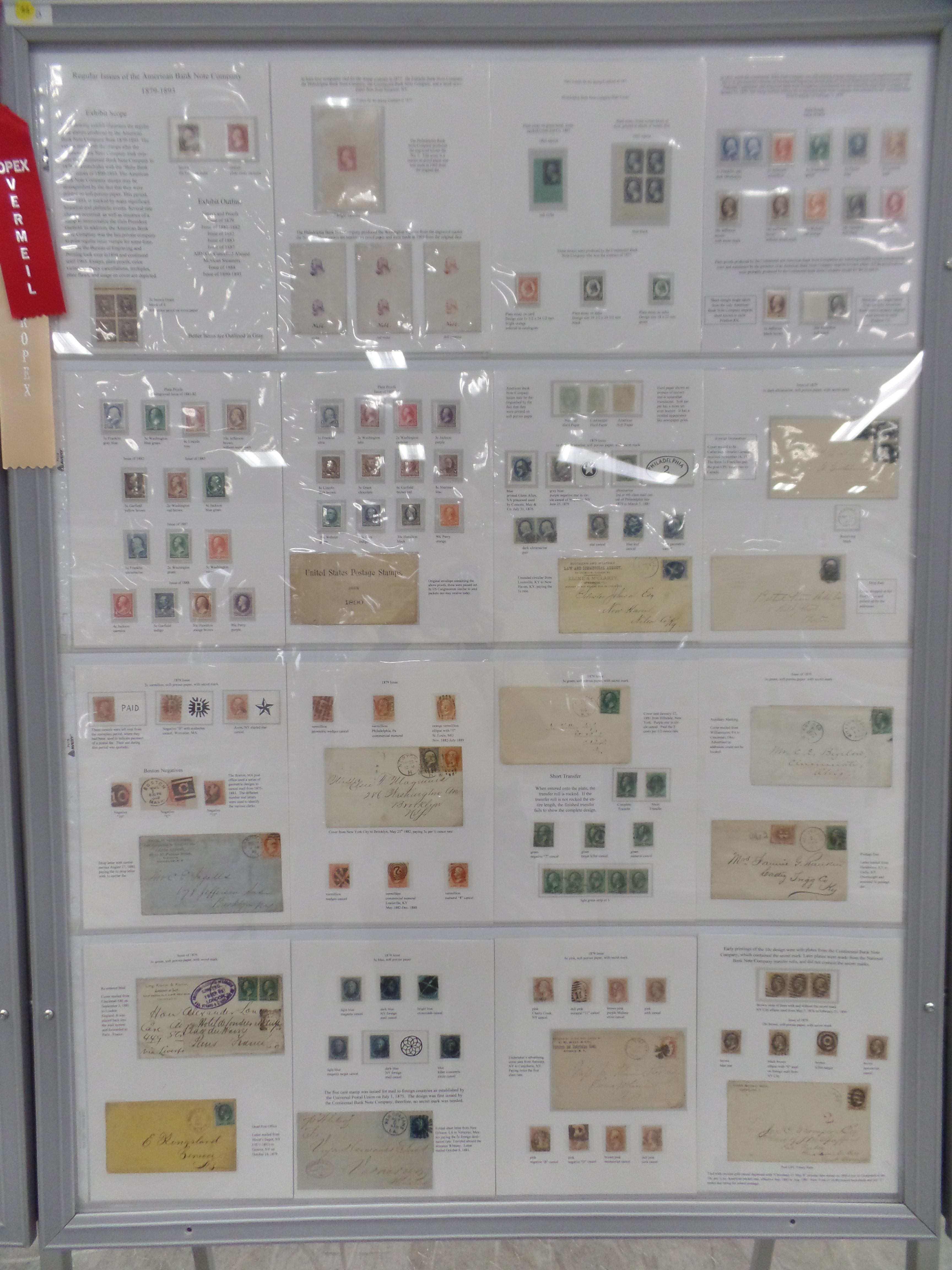 Essays, plate proofs, color and plate variations, fancy cancellations, multiples, and usage on cover of the American Banknote Company.
