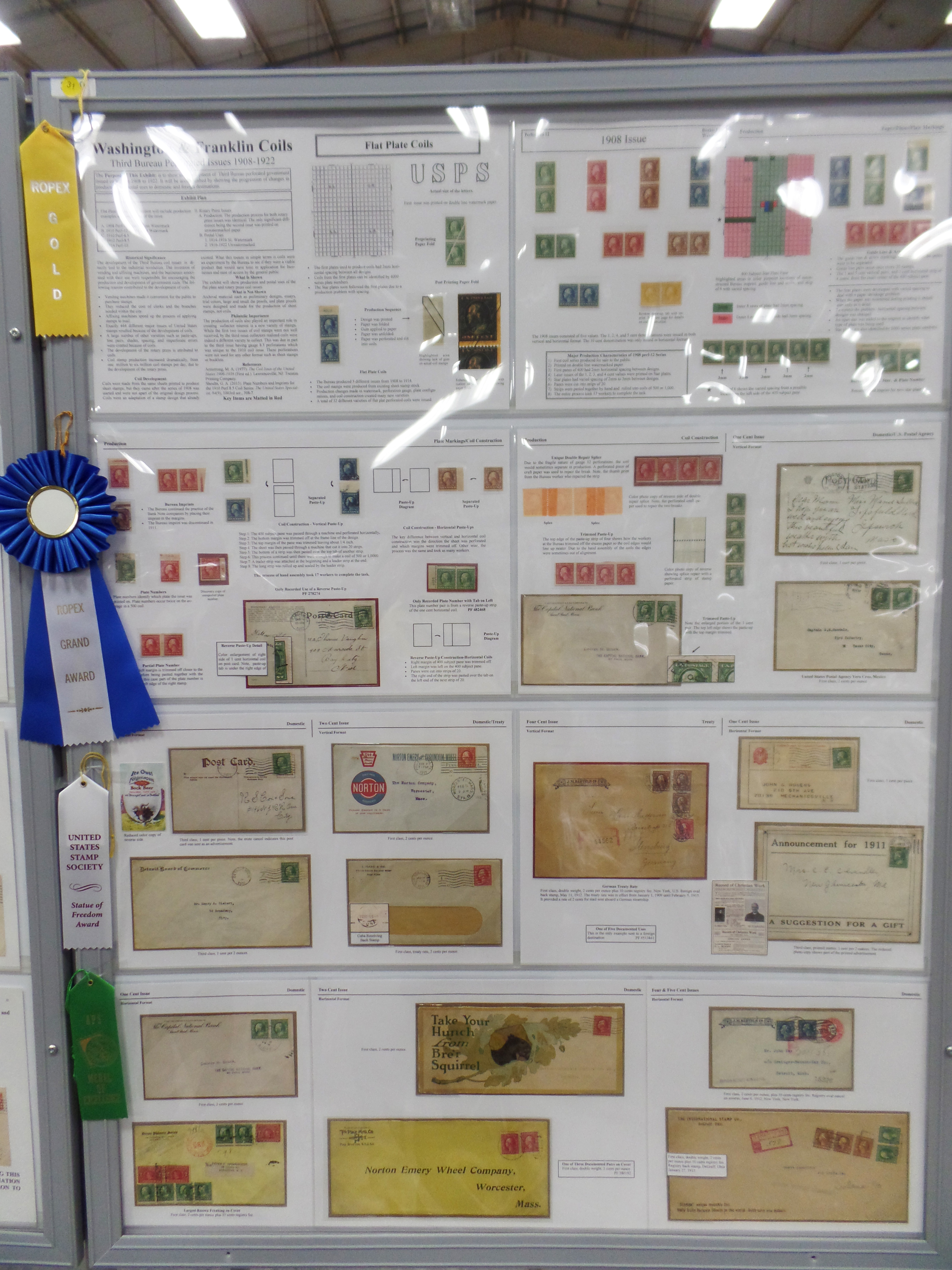 The traditional exhibit features the coil stamps, production material, with domestic and foreign uses of the third Bureau coil issue.