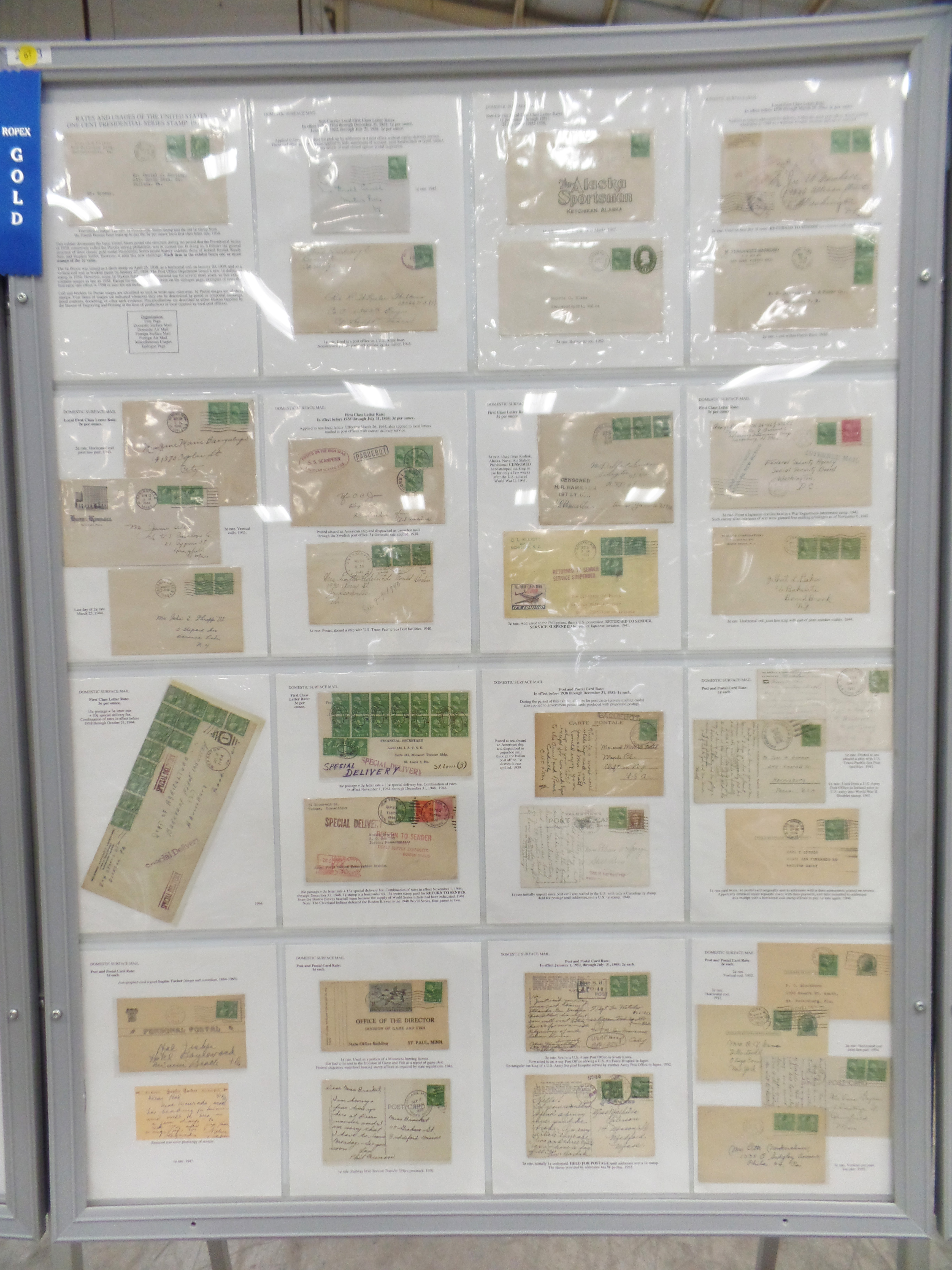 Postal history exhibit shows usages of the 1 Prexy to document the basic U.S. postal rate structure of the time.