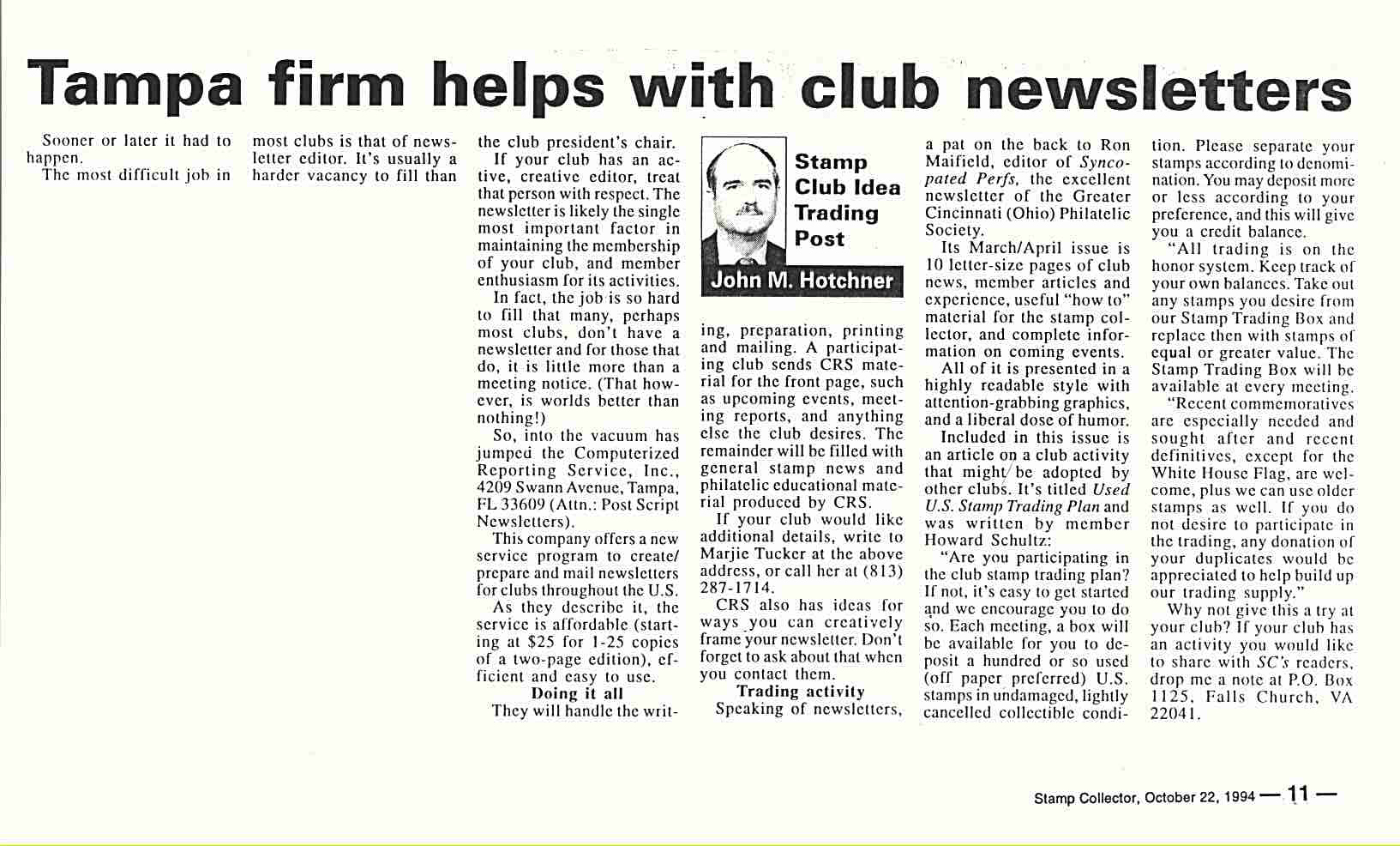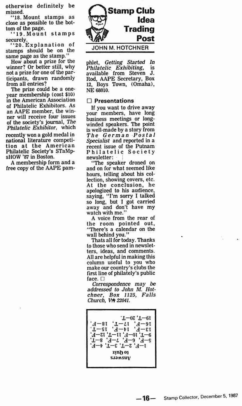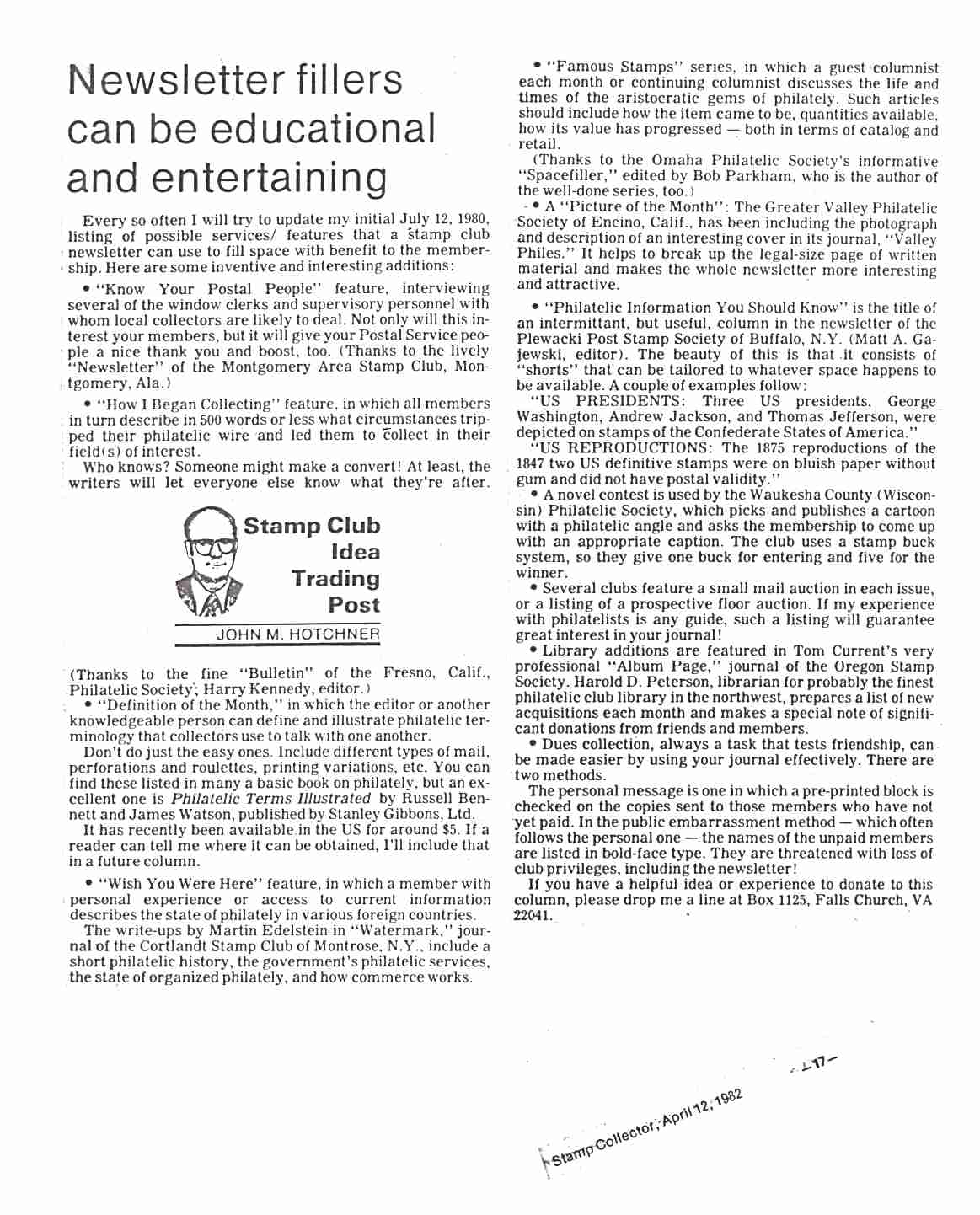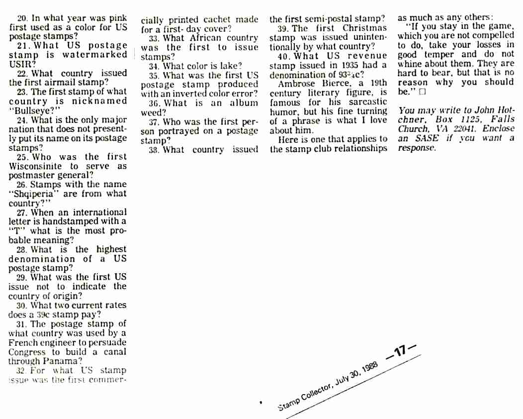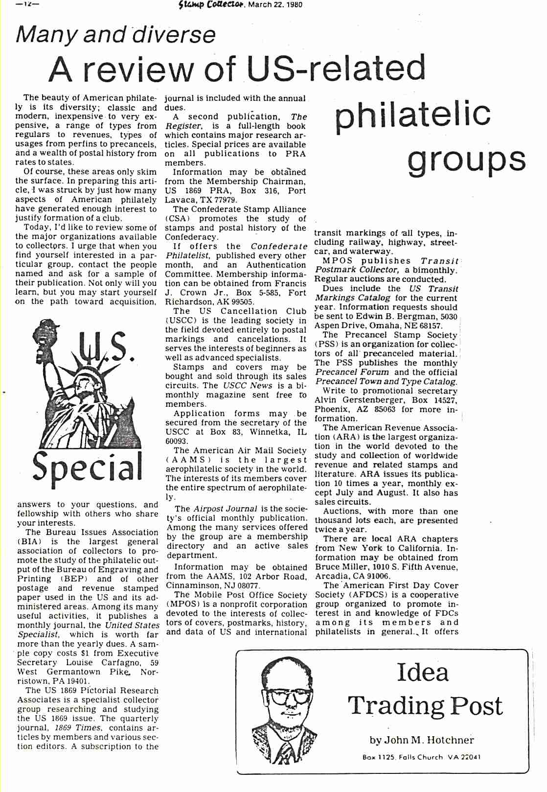 appeared over 18 years in Stamp Collector, a major philatelic publication in the US.