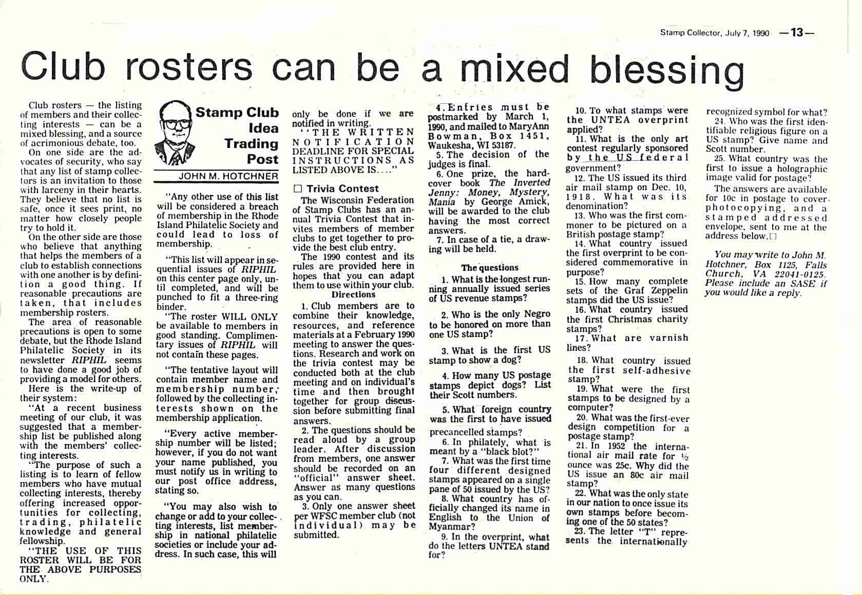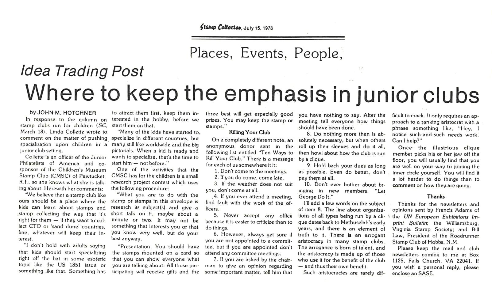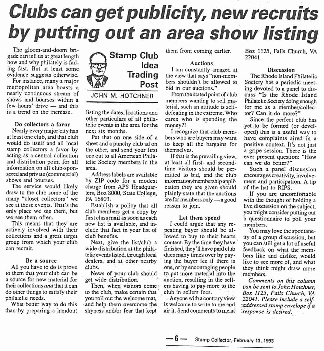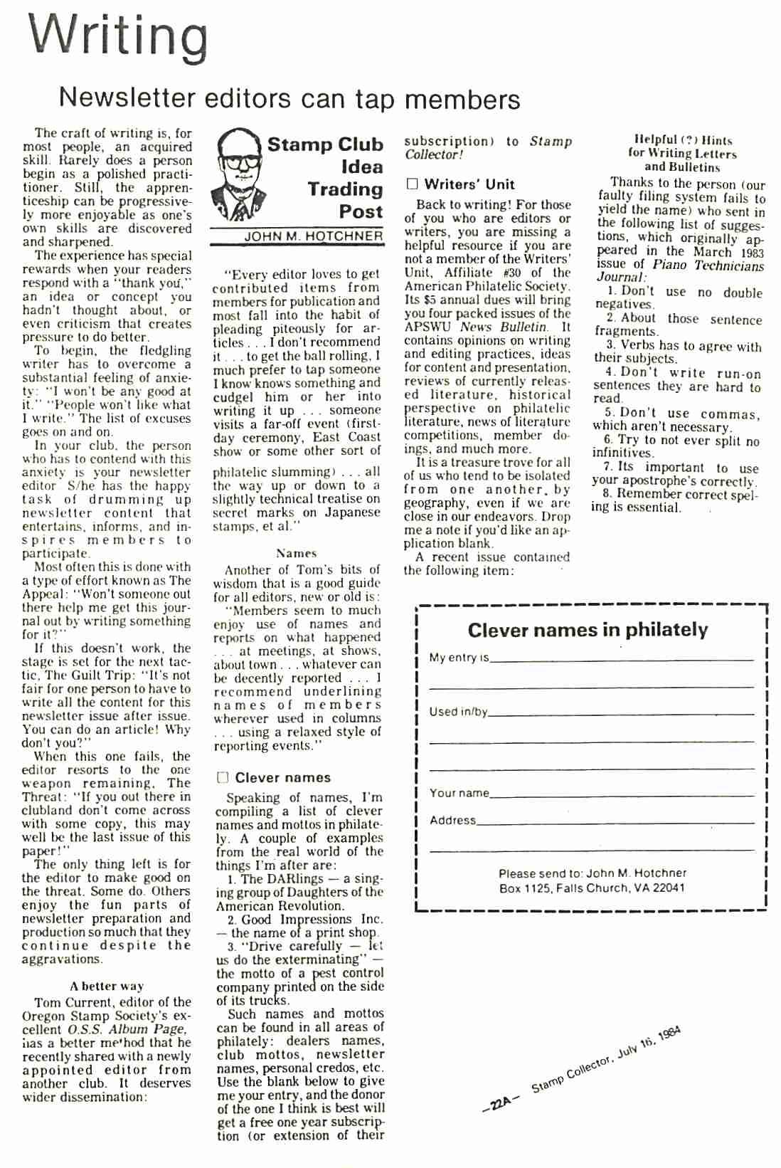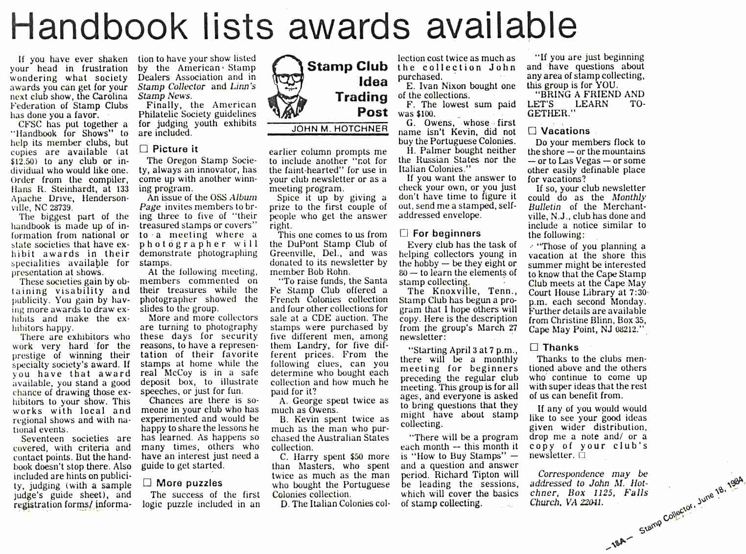 appeared over 18 years in Stamp Collector, a major philatelic publication in the US.