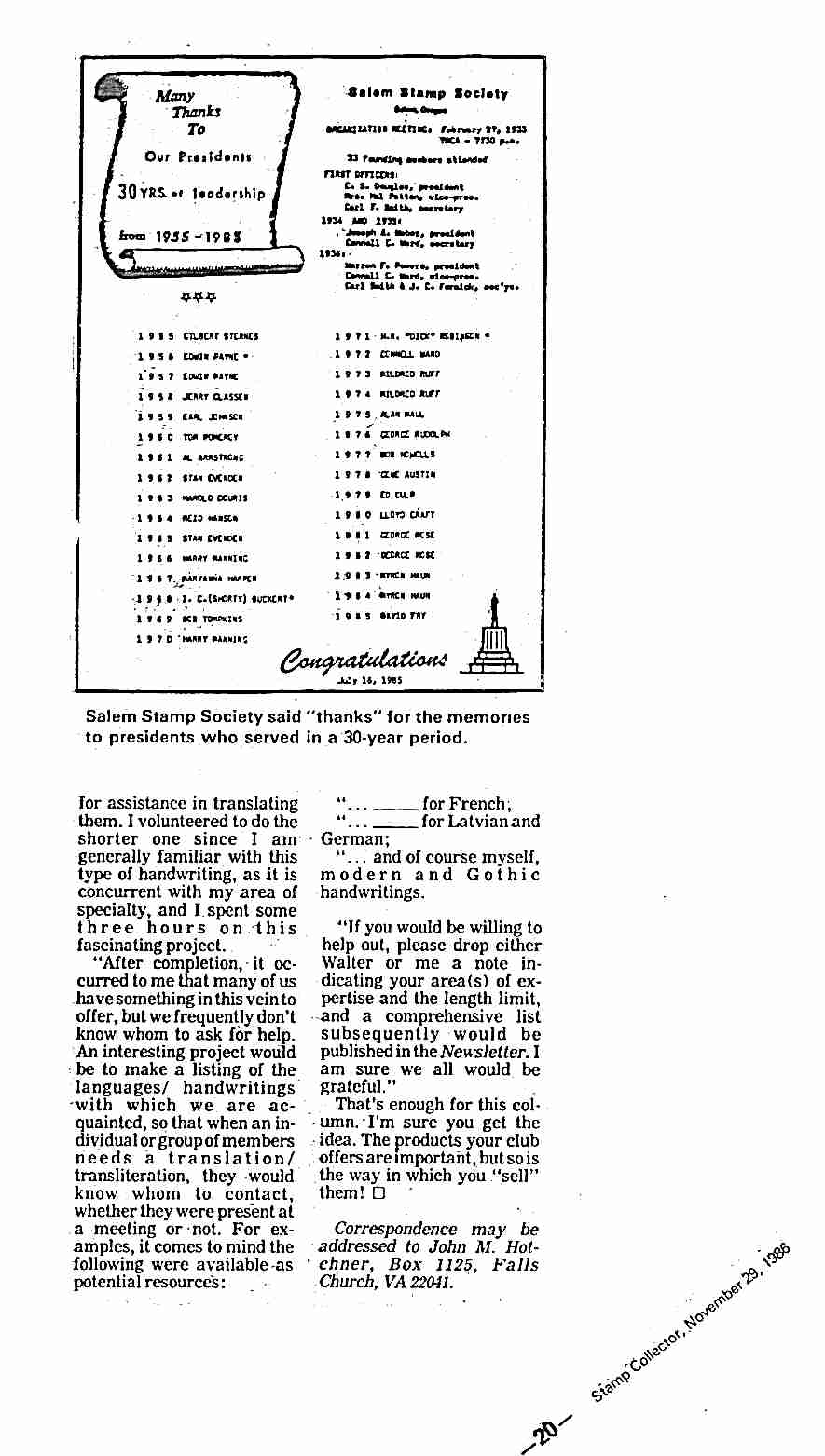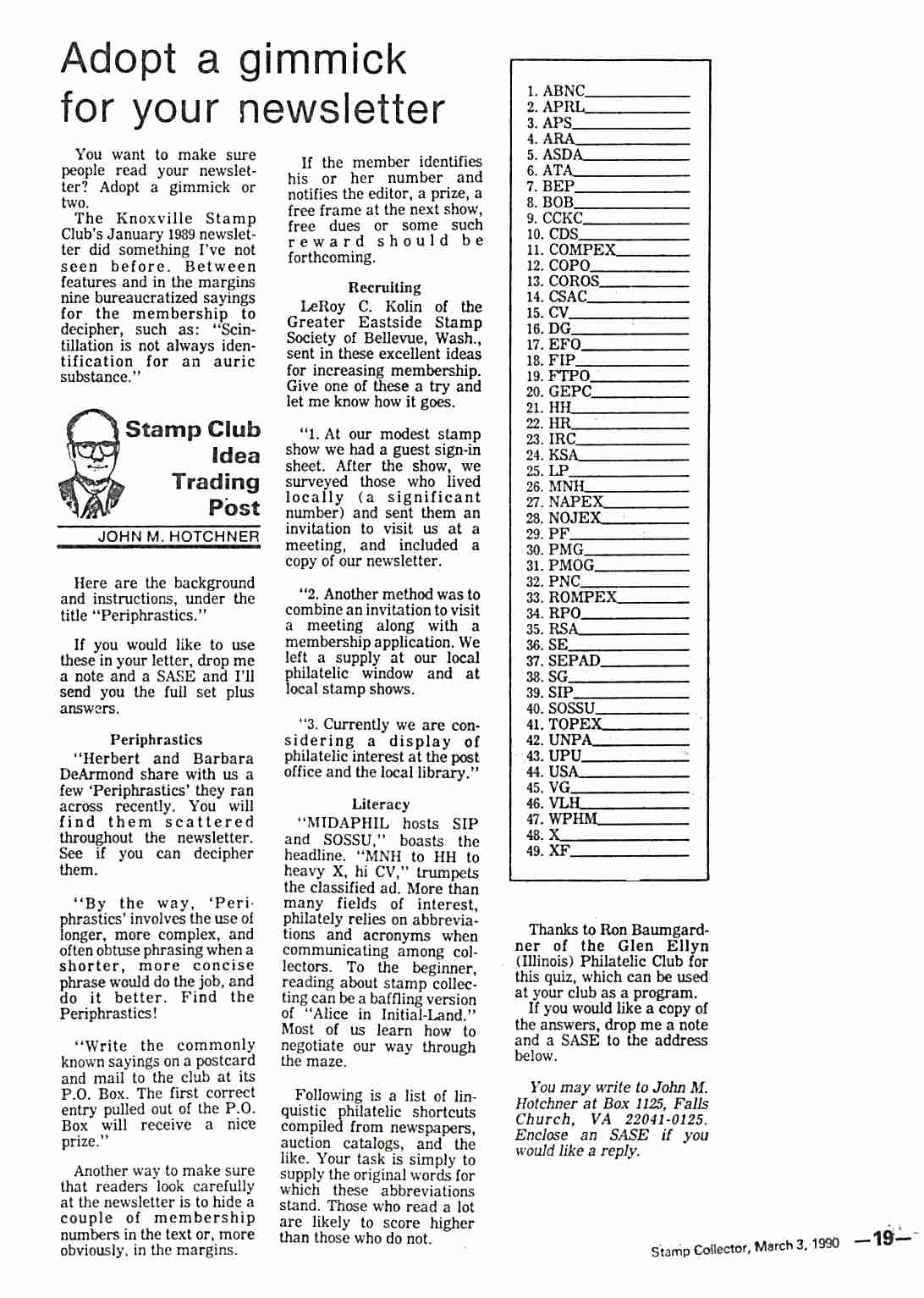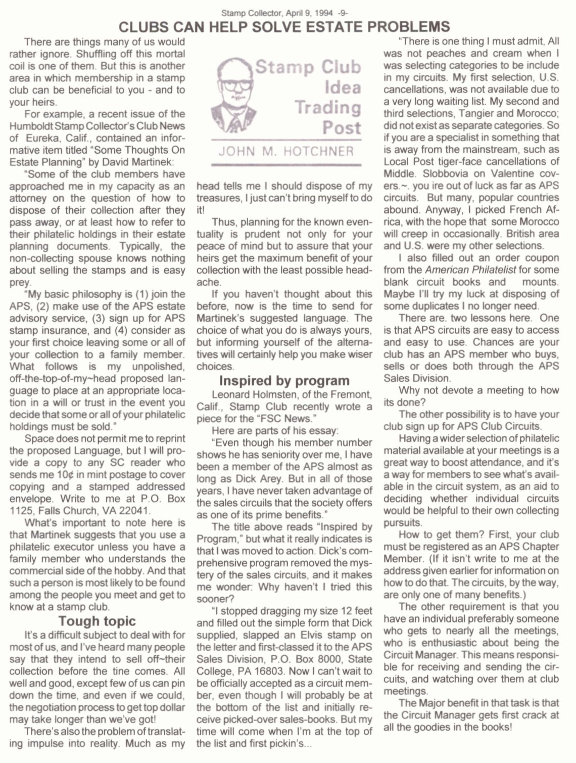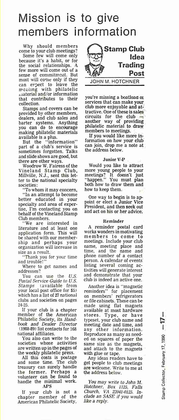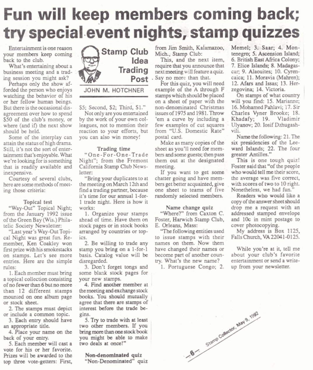 appeared over 18 years in Stamp Collector, a major philatelic publication in the US.