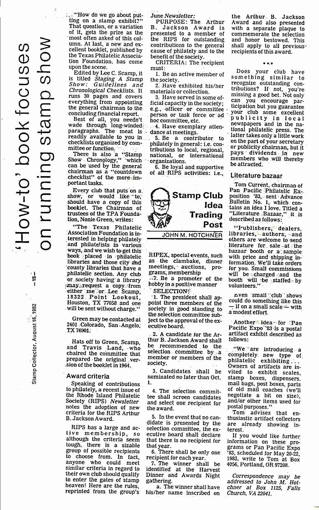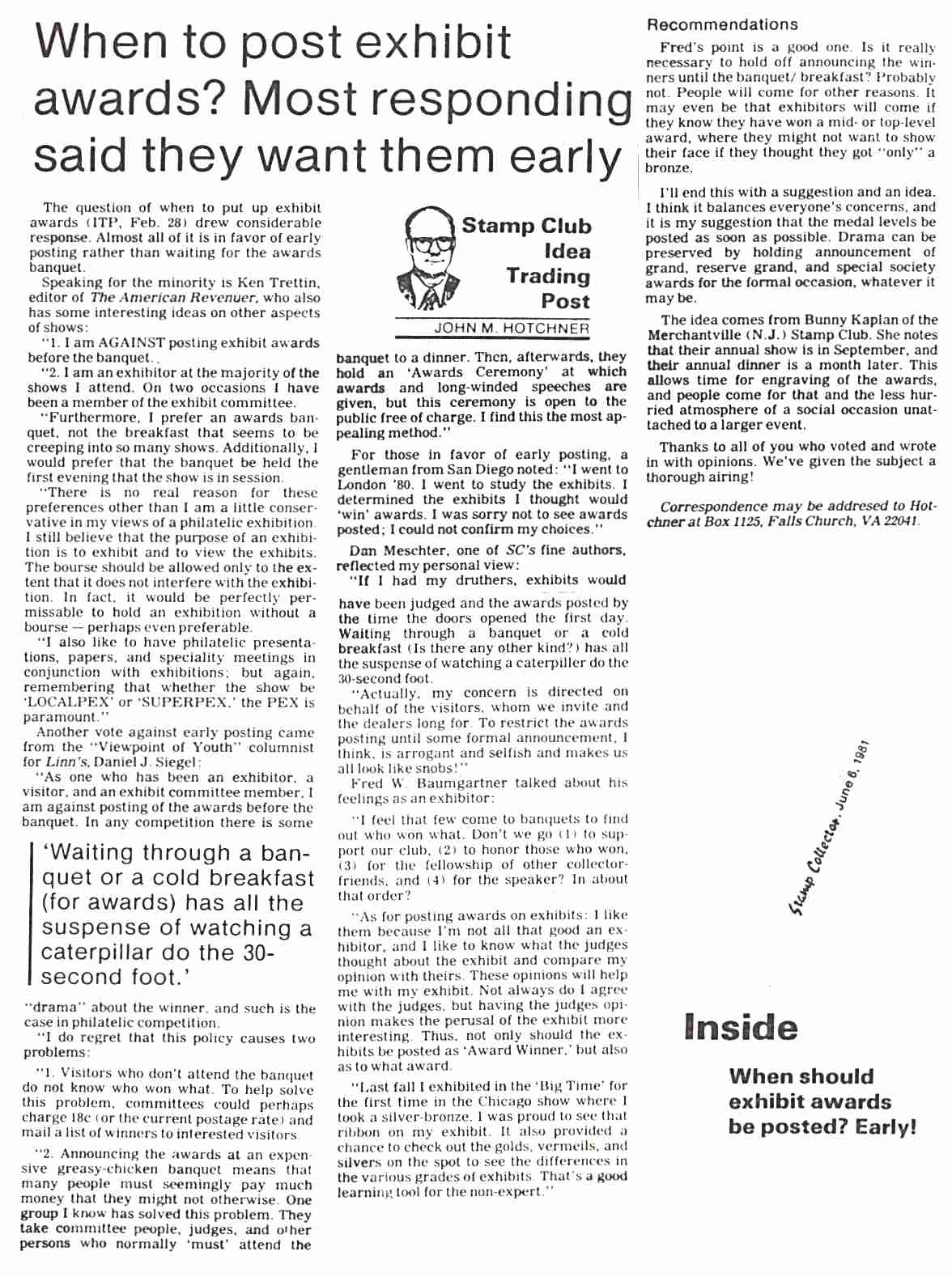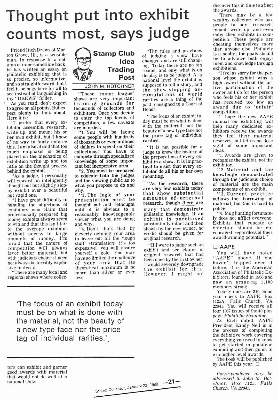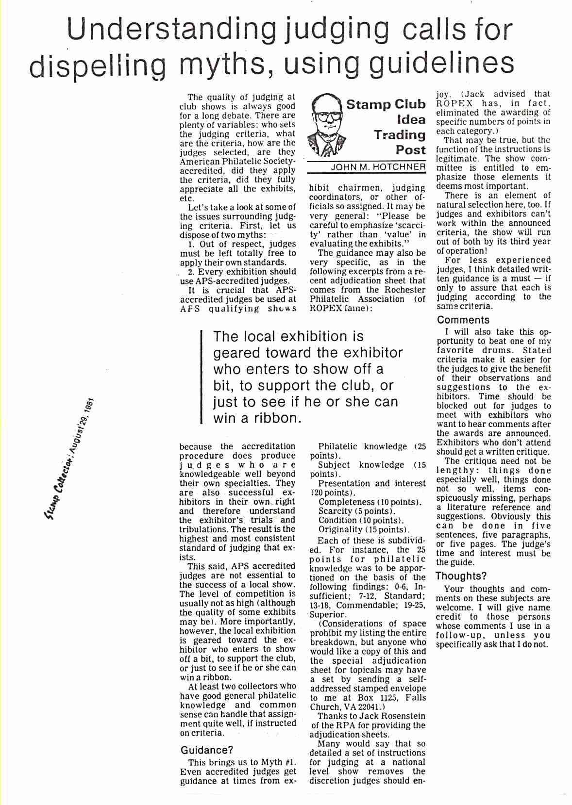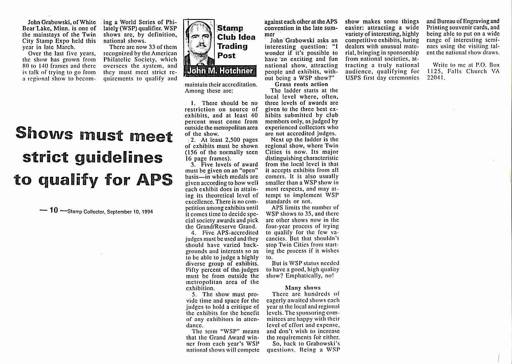 and judge, and past president of the American Philatelic Society, John Hotchner. They